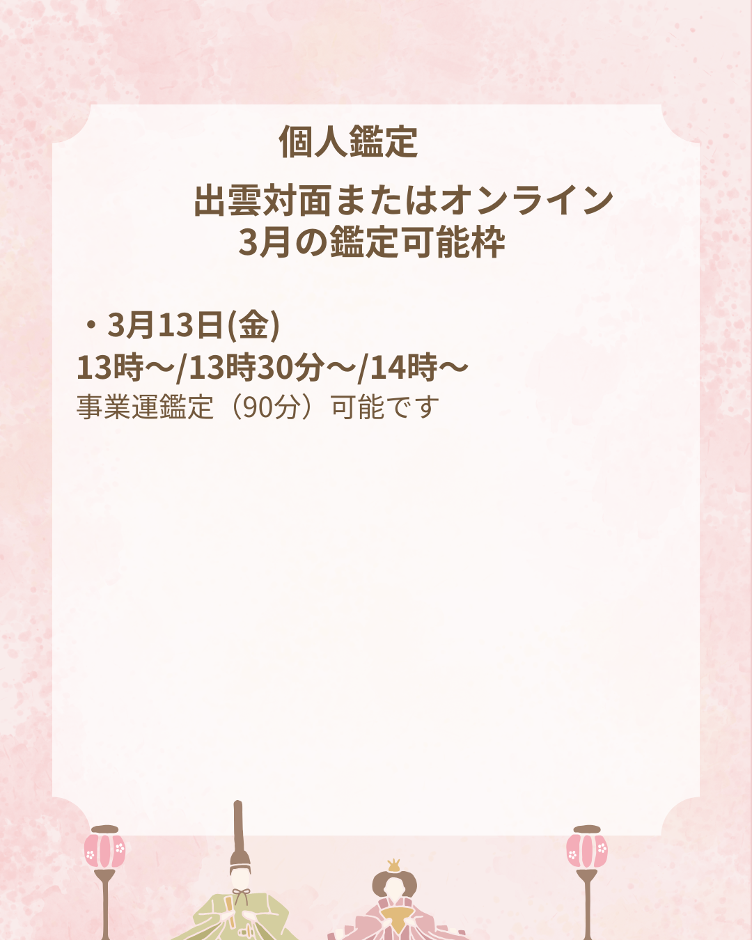 また、いにしえの宿 佳雲、月夜のうさぎにて専属鑑定士としても活動中で、 出雲大社近くの宿に滞在される全国からの宿泊者様とのご縁を、鑑定を通じて結んでおります。